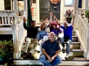 Four attendees in the group with a variety of different backgrounds, different genres, and different stages in their writing were Michael Montoya (who is writing a memoir about his gender transition while teaching in a prison system); Isabel Voegele (who came from Switzerland and is writing a murder mystery about a London auction house art heist); Kit Kleinow (who is writing a dystopian novel about a 16-year-old fighting for their sanity in a threatening world); and Nikhil Hutheesing (a journalist who is writing an historical novel about his grandmother, Krishna Nehru Hutheesing, the youngest sister of Jawaharlal Nehru, the former Prime Minister of India).