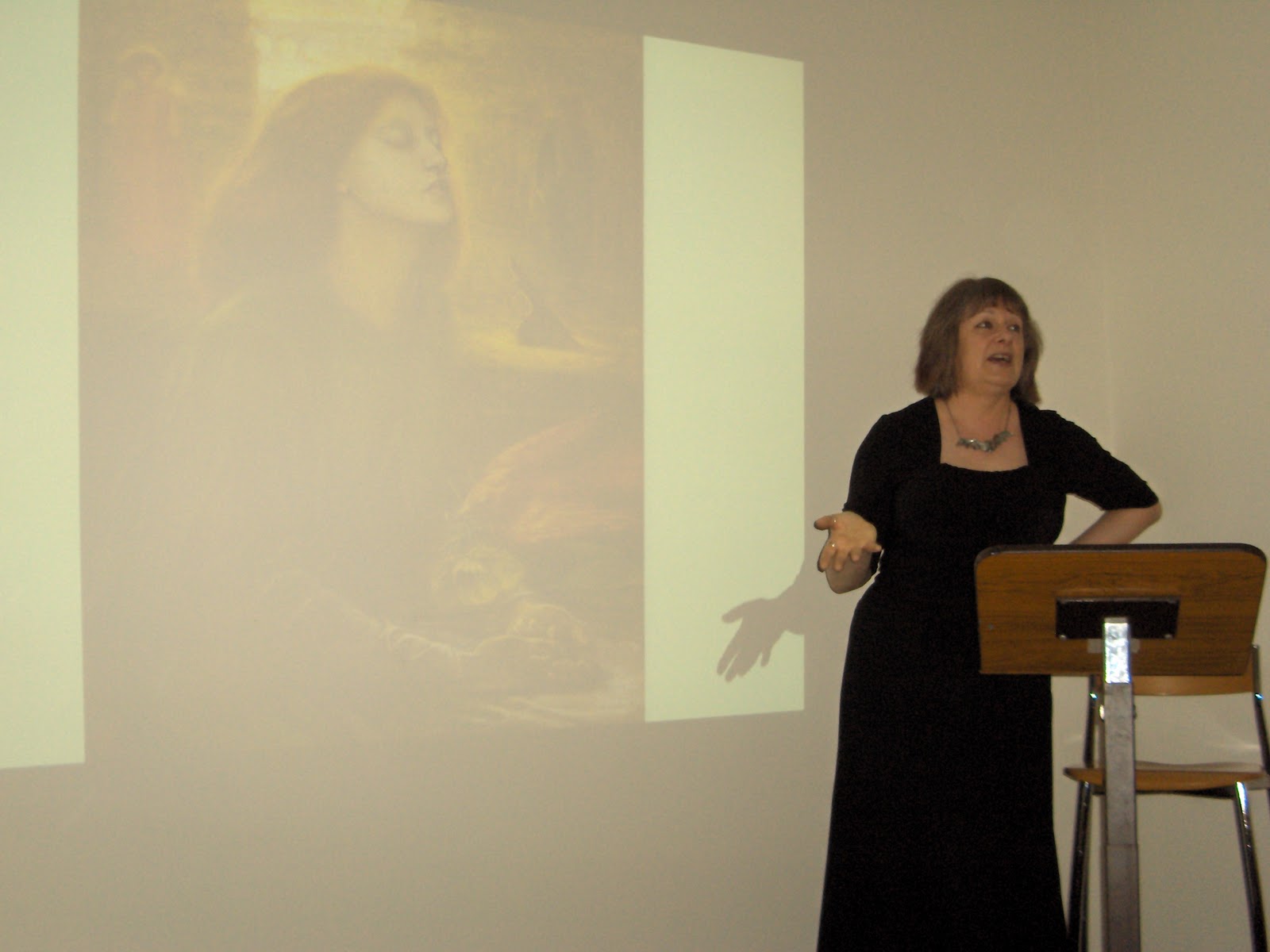 The following day (Saturday) started at 11 am with a session organised by Tartarus Press. This included a fascinating talk by Mark Valentine on the Yorkshire ghost story writer W. F. Harvey, author of The Beast with Five Fingers, and an illustrated lecture by Gail-Nina Anderson, "The Ghost in the Grave", which followed the curious links between Dante Gabriel Rosette's famous paintings of his wife and so many other well known icons. The session finished with Reggie Oliver's customarily masterful reading of one of his stories, this time Minos or Rhadamanthos, which is to be published shortly by Tartarus Press and recently appeared in The Seventh Black Book of Horror.
