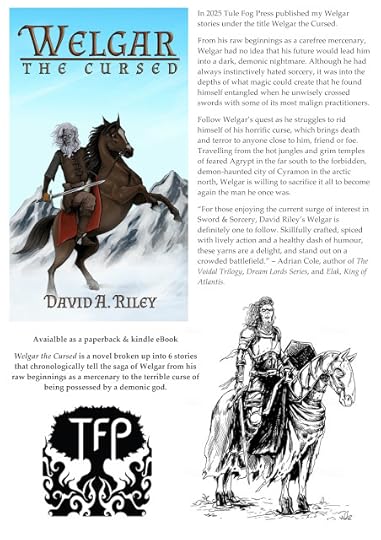At some time in the future I am aiming to see publication, hopefully by other publishers, of my swords and sorcery stories, along the lines of Tule Fog Press's Welgar the Cursed. Titles I have in mind are Horbeck: Tales of a Mercenary Barbarian and Tales of the Azure Sea, though these are just tentative at the moment. I have 35 swords and sorcery/dark fantasy stories written at the moment, totalling 252,000 words, plus a 70,000 word novel called The Sorcerer's War which is currently "doing the rounds".