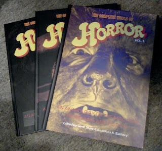 I received my copy of the hardcover volume 3 of The Complete World of Horror today, which reprints facsimile copies of issues 7, 8 and 9 of this magazine from 1974. Contained is a reprint of my early horror story, "The Shade of Apollyon" illustrated by my friend Jim Pitts.