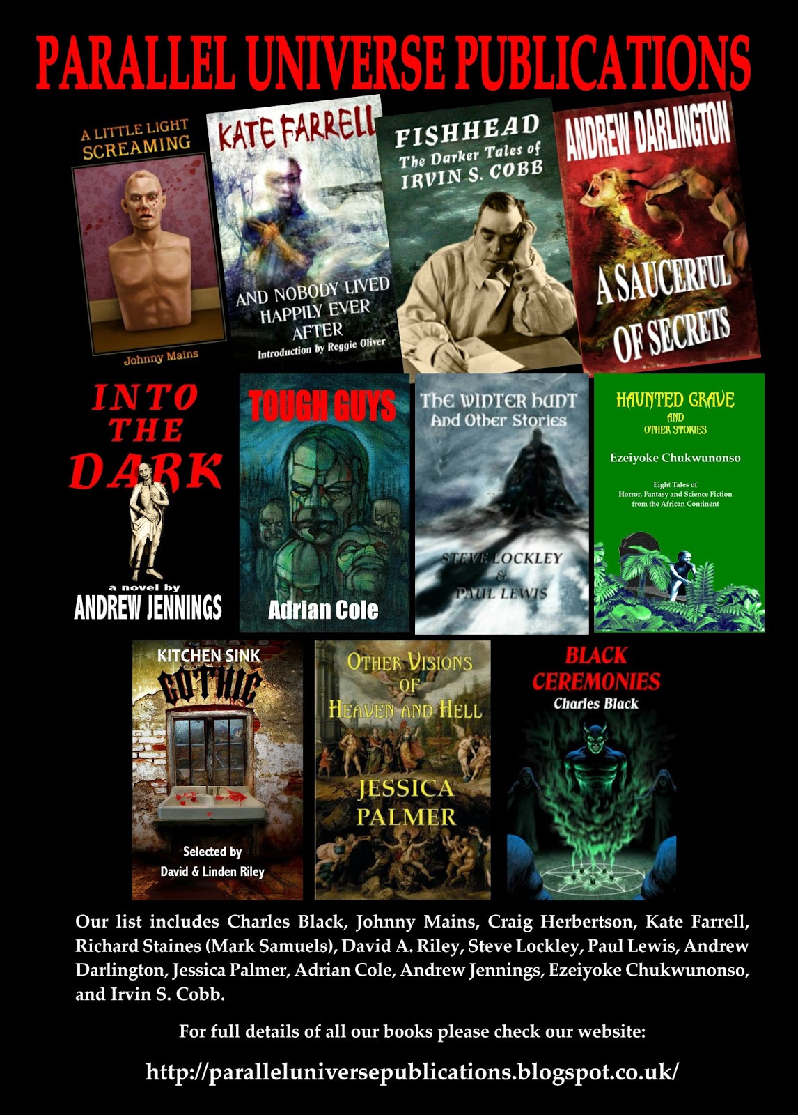 Looking forward to meeting some of our authors who'll be at FantasyCon, including Adrian Cole, Paul Lewis, Steve Lockley, and Ezeiyoke Chukwunonso, as well as my old friend, the artist Jim Pitts, who did the cover for Adrian Cole's Tough Guys and a splendid frontispiece for Fishhead: The Darker Tales of Irvin S. Cobb.