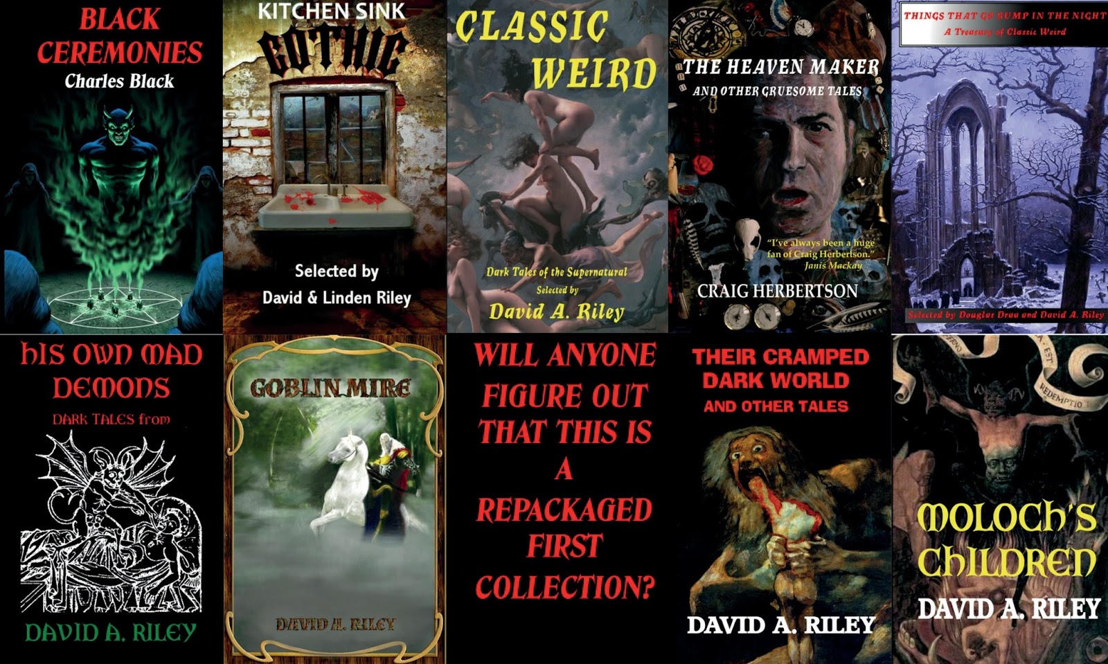 Parallel Universe Publications are offering a free mobi copy of any two of the following books (Moloch's Children, Classic Weird, Their Cramped Dark World, His Own Mad Demons, Things that go Bump in the Night, and Goblin Mire) for anyone who purchases a copy, either print or ebook, of Kitchen Sink Gothic and posts an honest review on Amazon. Just email rileybooks@ntlworld.com to claim whichever two books you would like.