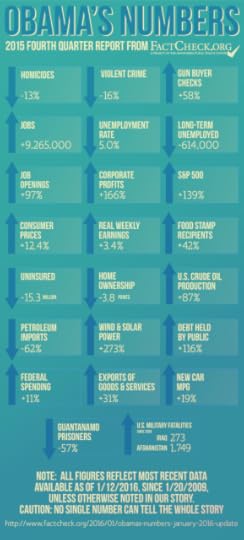 Gang:I’ve been off editing my new novel so I have been on the outside reading about what happens in DC. Here is what I think should be considered by all –especially those of you with friends who are in districts or states with representatives or senators with a vote on the tax (handwritten) bill:FactCheck.org reports: A statistical measure of the U.S. on crime, guns, jobs, health insurance and more under Barack Obama.Brooks Jackson-Posted on January 12, 2016: