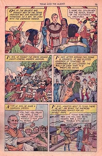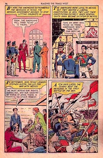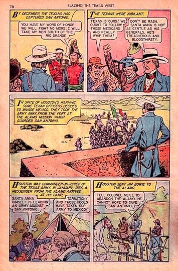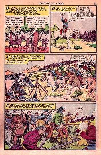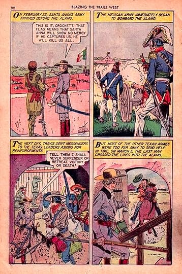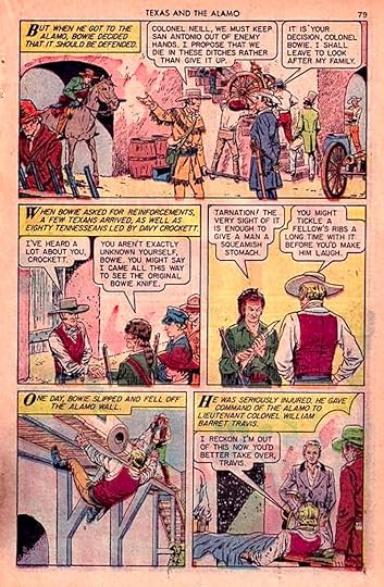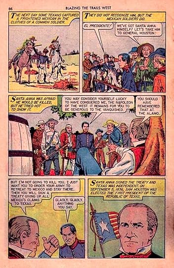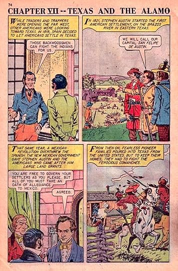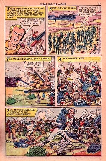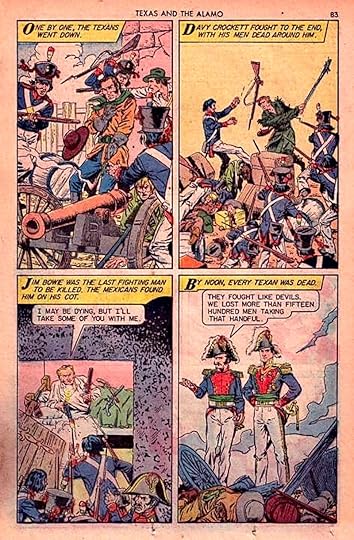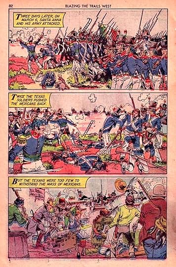 The 100-page Classics Illustrated Special Edition, BLAZING THE TRAILS WEST featured this chapter devoted to Texas independence. The art is credited to John Severin. Some of it looks a bit like him, some not so much. My apologies for the lousy image quality. This is the best I could find.
