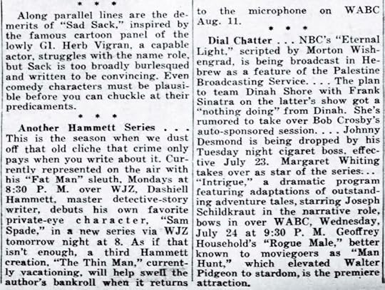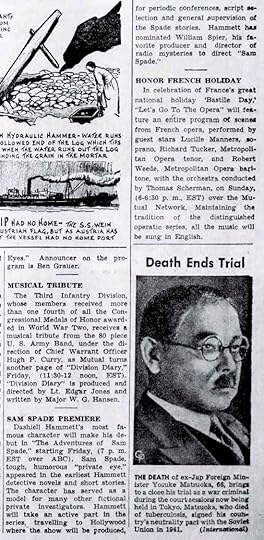 Des Moines Tribune, July 11, 1946 Circleville Herald, July 11, 1946 New York Daily News, July 11, 1946 Akron Beacon Journal, July 12, 1946 Miami News, July 12, 1946 Des Moines Tribune, July 12, 1946 Unknown, July 12, 1946