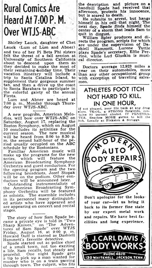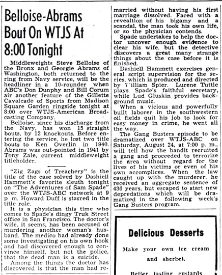 Cincinnati Enquirer, July 28, 1946 New York Daily News, July 29, 1946 New York Daily News, Aug. 18, 1946 Chicago Tribune, Oct. 6, 1946 Cincinnati Enquirer, Oct. 6, 1946 Detroit Free Press, Oct. 14, 1946