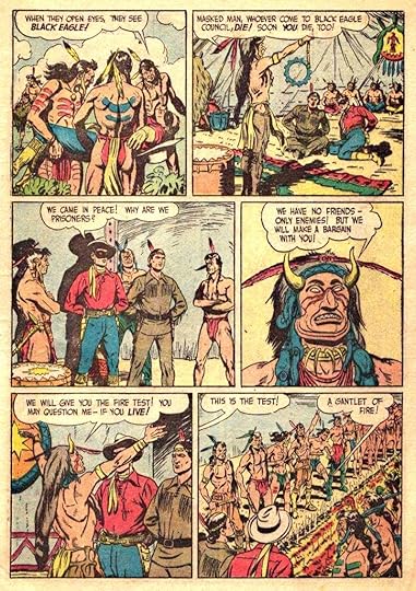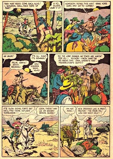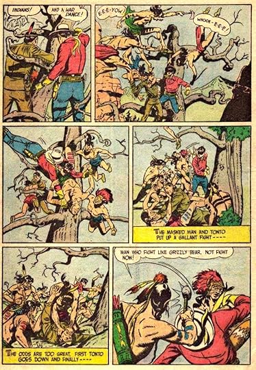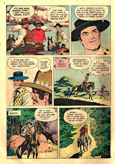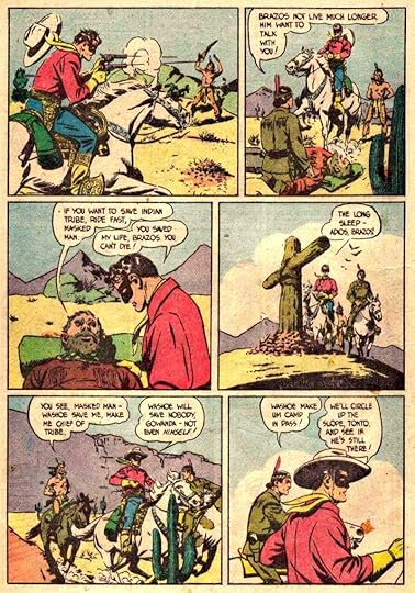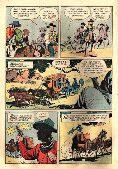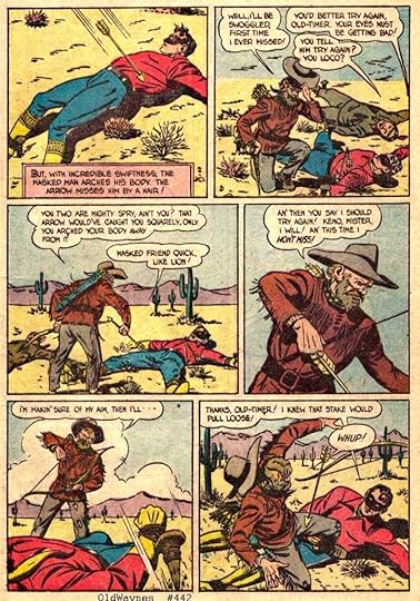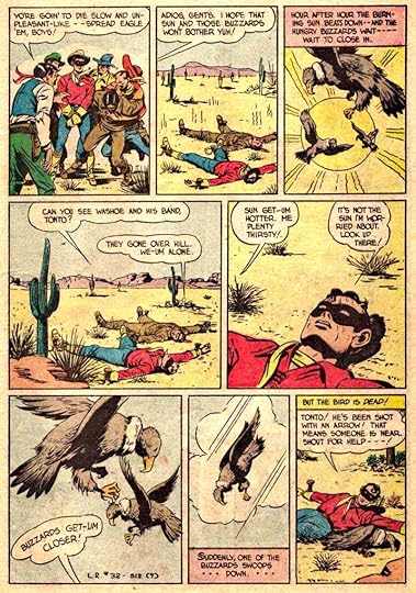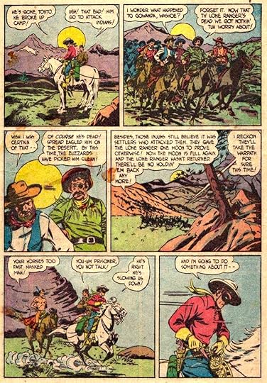 This adventure comes riding at us from The Lone Ranger #32, dated Feb 1951. It features some action-packed art by the Ranger's longtime comic strip artist, Charles Flanders. Was this story adapted from a strip? I wish I knew. There would be four more issues before TLR tossed out his old red shirt and bought a blue one.
