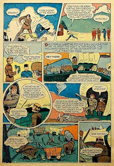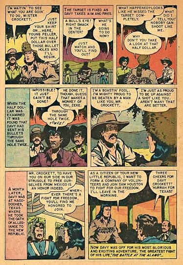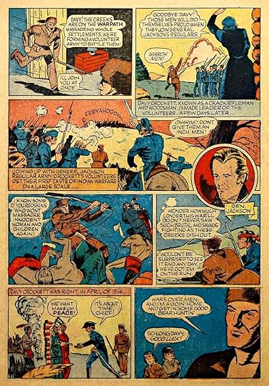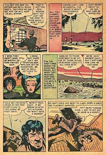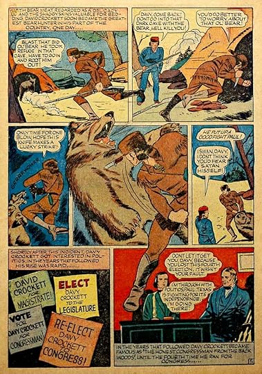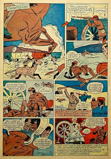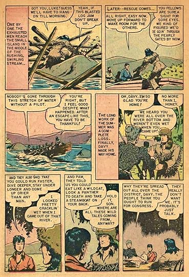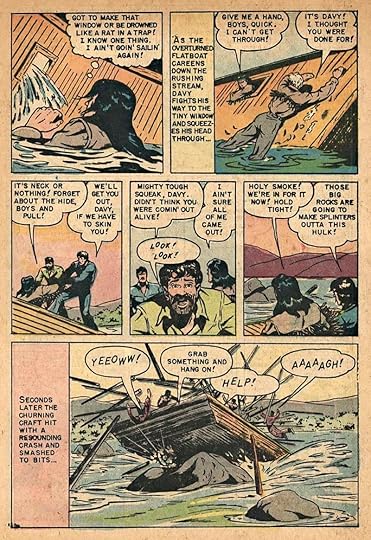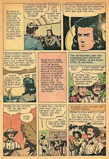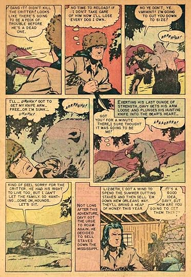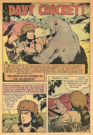 This adventure of old Davy comes to us from Wild Bill Hickok comics #17, back in Mar-Apr 1954. It was a reprint, originally appearing in the Avon one-shot Davy Crockett in 1951. Thanks to Walt Disney, it was well worth a re-run. The art is believed to by Howard Larsen, who also did some fine work for EC, Fiction House and other comic publishers. Thanks to Snard for providing this ish to ComicBookPlus.
