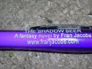 I am now the proud owner of 50 promotional purple pens (that’s some illiteration) with my name, website and book title on. They look fab, as you can see from this pic (One is modelled by mr kit