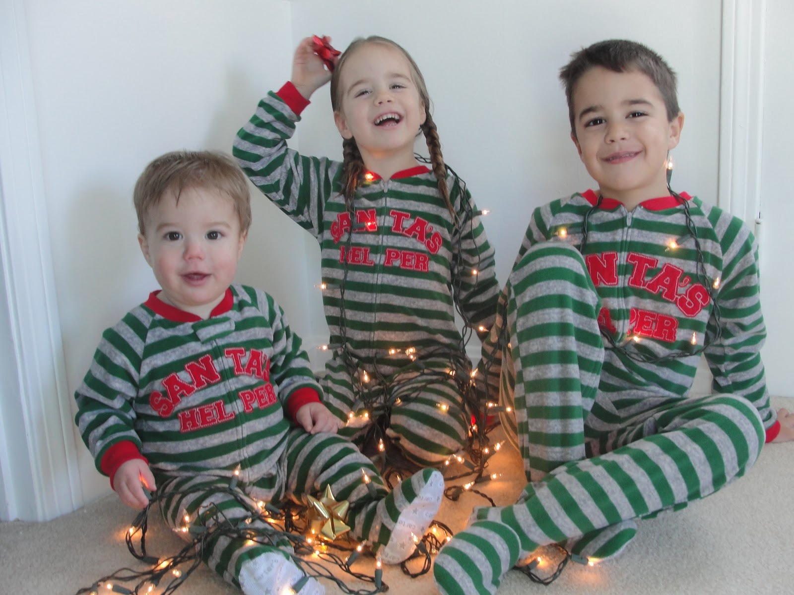 So, the concept for photo shoot #2 was simple. Put the kids in embarrassing Christmas pajamas and cobble together a decent picture.