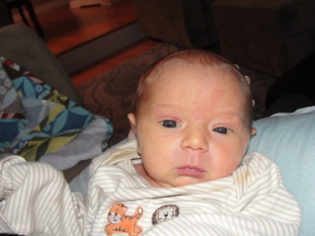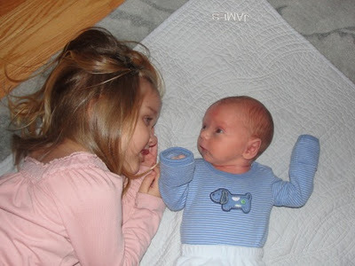 Big sisters take their role very seriously. Well, some do. Lydia is one of them. It's super-cute.Big sisters who take their role very seriously spend approximately 99% of their awake hours approximately 1 inch away from baby's face. It's kind of annoying.How long does it take for said big sister's barking cough to be transferred to 4 week old? 2 days. Licking a newborn's face = bad idea.James is a pokey eater and can give or take food. Lydia survived on very little food for a large portion of her early days. Lisa says I produce children who could survive the Apocalypse.The 3 AM pokey feeds are semi-exhausting. But then again the house is quiet, the room is dark and I get to rock my little man while he stares at me like I'm the best thing in the whole wide world. It's hard to complain.Someone asked me at 9 months pregnant if I was afraid I wouldn't love my second as much as I love my first. I looked at them like they were crazy. It never occurred to me. Now I know for sure that there is plenty of love to go around. Maybe just a tad bit less while Lydia licks James's face or James spits out his pacifier like it burns.I'm waiting for that "my family is complete" feeling Lisa promised me I'd get when I looked at my new (and eventually final) addition. Haven't had it yet. I love newborns. I love the possibility and the promise and the hope that comes when you glance into the bassinet at the hospital and admire what you've created. And I can't imagine not doing it all over again. I'll get back to you when he's two.Oh...and most importantly, I've learned that Thursday comes really, really quickly and reading a book right now is virtually impossible. I did finish HOW TO SAVE A LIFE though so be proud of me. It was incredible, by the way.
