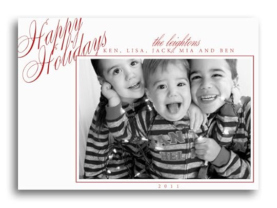 Finally get a decent shot of Jack and Mia and cut off Ben's head. I'm guessing the fact that it took me 96 pictures to get one usable shot for a Christmas card has way more to do with my photography skills (or lack thereof) as opposed to my children's inherent inability to take a decent picture.
