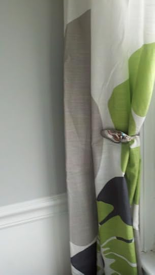 Instead of curtain hooks (or whatever the hell they're called) I bought two spoons at Target for $1.99 and bent them. We had Yavuz (the best handy man on the planet) over to fix a broken window and he drilled holes in the spoons and mounted them for me free of charge!