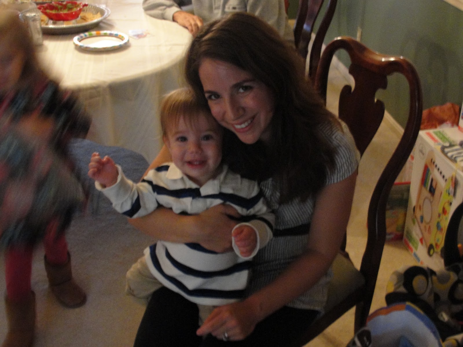 To celebrate the occasion, Ben has decided to start climbing the stairs. Being the stellar Mom that I am, I decided to snap a quick photo of his inaugural climb and he literally somersaulted down the stairs as I was snapping the pic. Nothing says Happy Birthday like a suspected concussion.