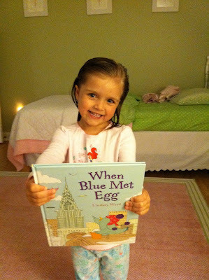Parents and siblings were invited to the program where Lindsay was going to read her newest book WHEN BLUE MET EGG, which I'd already read, LOVED and purchased for a birthday present, and the kids would have a chance to ask their crazy, four-year-old questions.