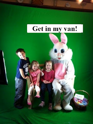 We took the kids to Bob Evan's for a free dinner with the Easter Bunny event. They were SO excited to meet the Easter Bunny. When they got back to the table Lydia explained that the Easter Bunny wasn't able to talk and then Mia asked the obvious question: "What would the Easter Bunny say if he could talk?"