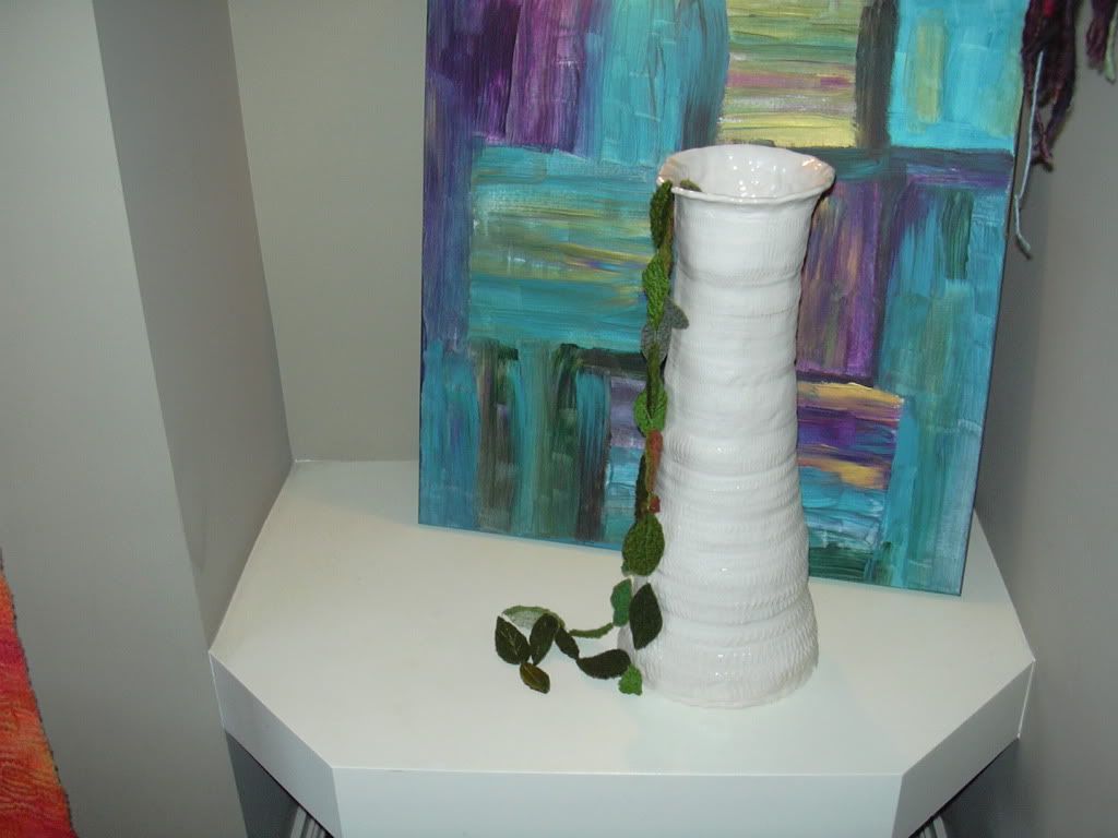 Above you can see the vase that inspired the piece that Ken is holding on the cover. The vase is for Ikebana, created by my teacher...