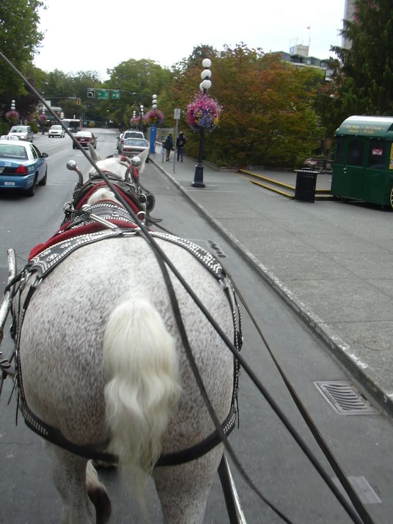 This weekend while on a research trip, I snapped a quick picture of one of the carriages going by and this second picture is very special...because it was taken by me riding shotgun right next to the carriage driver. He invited me up to talk to me about how he does his job. It was so extremely cool. I had th...