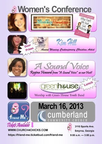 Church 4 Chicks hosted our first conference in Atlanta on March 16. Amid some major challenges and financial setbacks, the conference went beautifully thanks to an incredible team and an even more incredible God. We were blessed by Kim Hill's ministry and music, The Greenhouse (College) Band from Fellowship Bible Church in Roswell, GA, and by the wisdom and grace from our panelists who handled some really, really tough questions posed by our guests. It was an honor and a privilege to share principles from Romans 12 with the women and girls in attendance. It truly was an unforgettable day!If you or your church would be interested in hosting a "Friend Me" event or conference in your community, please let us know at Church 4 Chicks! We would love to partner with you in some way to help you create a similar event for the women in your area.I've also been privileged to continue as a host for "Atlanta Live" on WATC 57. My next dates hosting