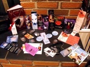 You can see the UMS postcards resting on the brick wall. What a lot of loot, eh? If your interested, follow the tour in Oct 2011. Meet more paranormal YA authors and enter contests for amazing SWAG prizes.