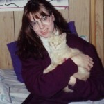 We had to say goodbye to our 18.5 year old kitty, Vegas, this week. Ugh, broke my heart. If you have pets, give them extra love today and everyday, they deserve it. Now we're down to our two crazy labs and it seems like an end to an era. Here's a pic of me with Vegas the day we brought her home. (Ignore my glasses – it was the early 90s!)