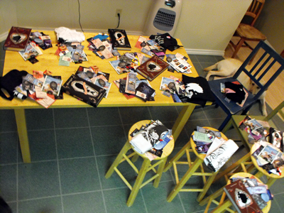 I just spent a few hours organizing the amazing Crossroads Blog Tour SWAG packages that will be mailed out to our 16 participating bloggers. See the full list on the Crossroad Tour page (image on the sidebar). The Crossroads headliners, 16 debut and established young adult paranormal fiction authors, were more than generous. We have handmade necklaces, bracelets, paranormalish bookmarks, magnets, buttons, postcards, bookbags, tees…and MORE!