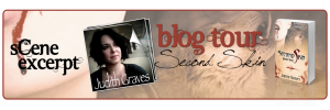 Speaking of amazing bloggers, I'm blown away with the fantastic graphics the Bewitched Bookworms created for this final Second Skin tour post – a snipet I wrote of Eryn and Alec's initial meeting – told in Alec's point of view. Hope you enjoy it!