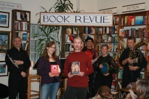 Authors Michele Lang (Dark Victory, Tor) and Kenneth Wishnia (The Fifth Servant, William Morrow) celebrated their books at Book Revue bookstore in Huntington, NY on Sunday, January 22. The standing-room only crowd enjoyed the sounds of the 13th Floor Klezmer Band.