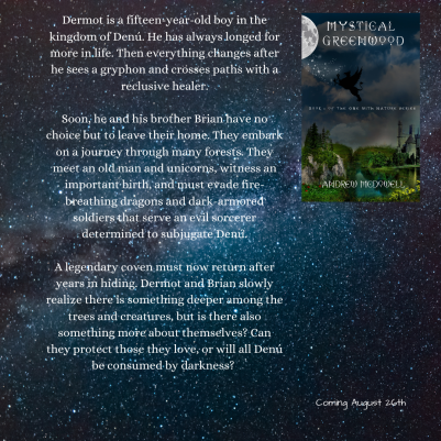 Many thanks to Fae Corps for publishing a second edition of Mystical Greenwood! For those who didn’t see last month’s post, the original publisher had to shut down as a result of COVID. Release date is set for August 26th! They did an excellent job on the new cover art!