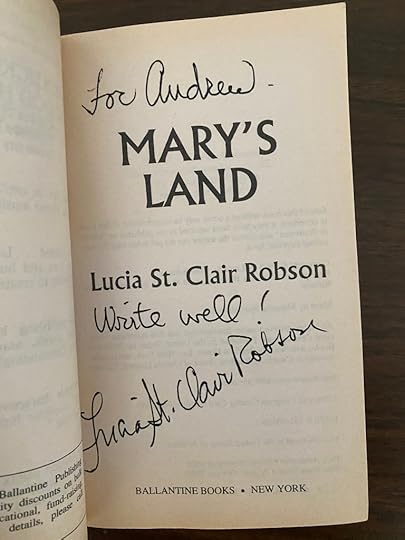 I was able to get my copy of Lewis F. McIntyre‘s The Eagle and the Dragon inscribed at the 2019 Maryland Writers’ Conference. It was at a meeting of the Annapolis chapter of the MWA that I had my copy of Lucia St. Clair Robson‘s Mary’s Land inscribed.