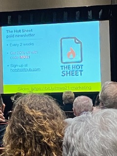 The Maryland Writers’ Association hosts a writers’ conference every year, except, of course, last year’s conference was cancelled due to the COVID shutdown. Normally held in March, they were able to host this one this past weekend. The main takeaway for me was being able to see a number of friends I hadn’t seen in so long, including authors A. L. Kaplan, Meg Eden, and Michele Chynoweth, and be in a familiar setting in person again, not unlike how it was when my critique group started to meet in person again a few months ago in our familiar haunt (no pun intended).