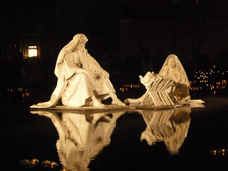 Nativity scene on the reflecting pond at Temple SquareHi! Just checking in. I've been working hard getting ready for Christmas and enjoying some of our favorite traditions. Last Saturday, we went to see the lights at Temple Square in Salt Lake City. They're so beautiful! By random chance, we walked into the Assembly Hall just in time to hear our very own high school choir perform. It was awesome.