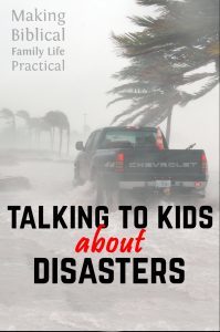 Remember that God is in control. He is not surprised by disasters and suffering. We can accidentally worry our children if we make them think that a storm or flood or disease happened in spite of God’s wishes. If God’s plan is overwhelmed by natural events, then how can we trust that He will protect us or take care of us? Instead, the Bible tells us that God controls weather, nature, and natural events, and He directs them both in judgment and in mercy!