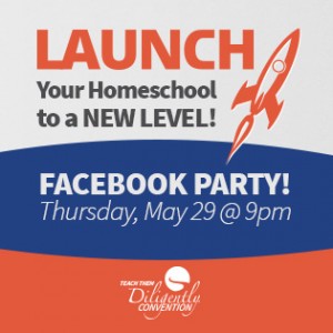 We are so excited to be a part of the HUGE Facebook party tonight, Thursday night, May 29th, at 9 pm Eastern. Facebook parties are so much fun – and Teach Them Diligently and all their friends (like us!) are offering over $1,200 worth of prizes!! This is DEFINITELY one party you do not want to miss!