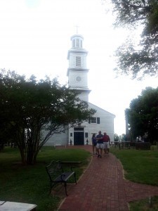 As we were leaving our hotel in Richmond one morning after the HEAV convention on our way to visit the disappearing chef (You’ll hear all about it later!), we happened to run into our friends Larry & Sue Pruett of Ancient Paths Christian Bookstore who were packing their van. Sue mentioned that they were going to visit St. John’s Church to see the re-enactment of Patrick Henry’s “Give Me Liberty or Give Me Death” speech. We decided to head over, too.