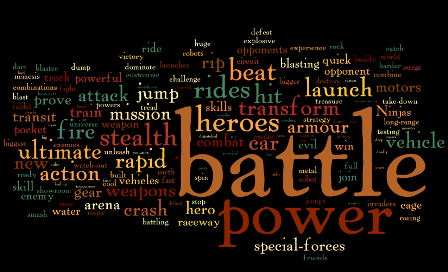 The words used in advertising toys for boys are things like battle, power, heroes, action, stealth, and mission, while the words used to advertise to girls are love, fun, friendship, magic, babies, mommy, hair, and style. So, do you think this is about "How Toy Ad Vocabulary Reinforces Gender Stereotypes?" We don't think so. We think that advertisers use words that sell, and these words sell not because kids are forced into stereotypical gender roles, but because boys and girls are reflecting how they are made.