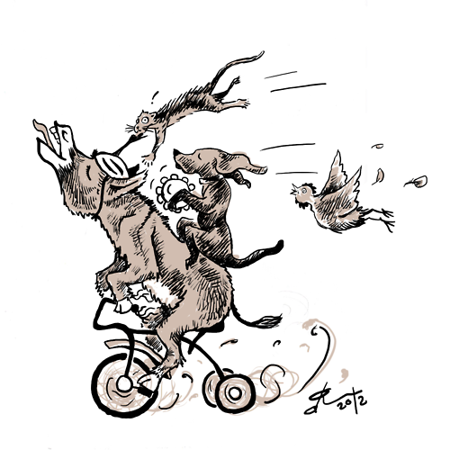 The Bremen Town Musicians on a Tricycle.