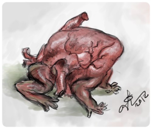 The Amphibious Heart. I tried to sketch this out last night sans references… now, I was never gonna get all the valves to look right without looking at references, but I should've remembered that frogs and toads have more than two legs. Needless to say, I think this version turned out much better.