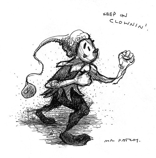 The Jester and his giraffe. Quick ink sketches with some brush-pen shading, which I don’t use often. I should have newer, more finished stuff to post relatively soon. In the meantime…