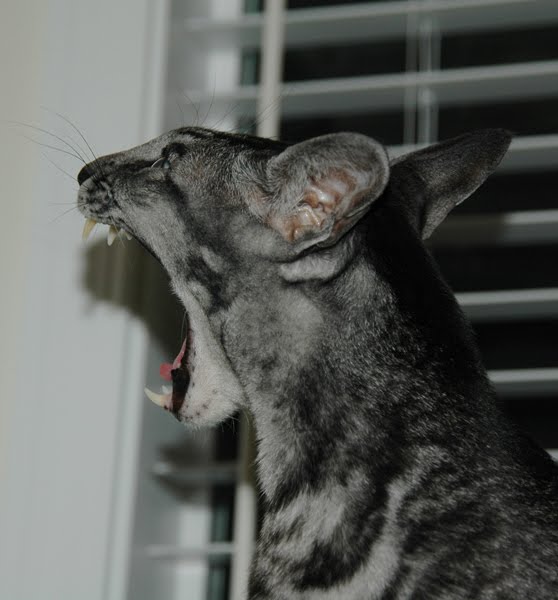 Tubby and Midget aren't the only cats here, though. Aside from my ex-cat Garfield and my parents' cat Motor, there is an Oriental Shorthair by the name of Spock.Meet Spock:
