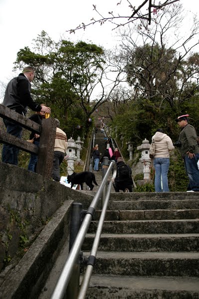 Now, the festival is divided up into three parts. There's the hike up to the shrine, the street fair, and the parade. Since it wasn't terribly crowded and we all still had some energy, we figured it would be best to do the hike first. That, and it was cold as hell, so a nice brisk walk would warm us up.