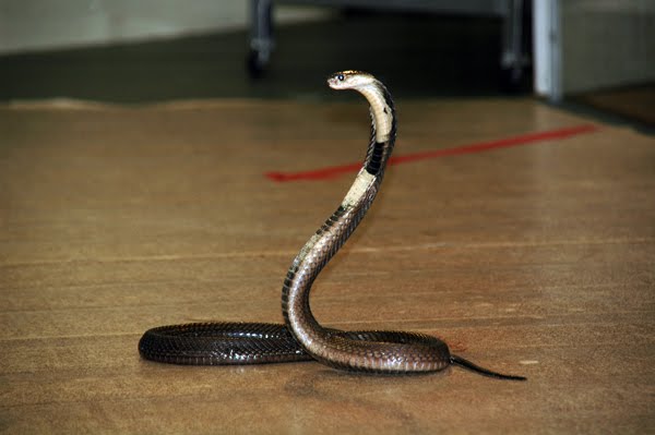 Quite frankly, if you're going to smack a cobra and make it faceplant on the stage, I think you deserve to be bitten. Just saying. However, the cobra displayed far more restraint than I would have in its position, and the douchebag handler finished the show uninjured. Kudos to you, my hooded friend.