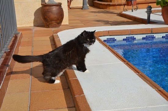 Midget finds the pool suspicious, but she's loving the sunshine.