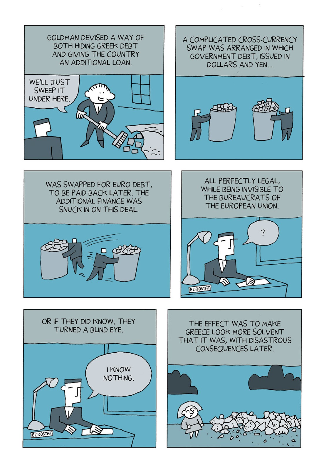 Two pages from Supercrash (Age Of Selfishness) that show how Goldman Sachs is implicated in the Greece/Europe fiasco. Remember, no one involved here has ever faced criminal prosecution. Millions of people are poor today because our economies are run by financial extremists.