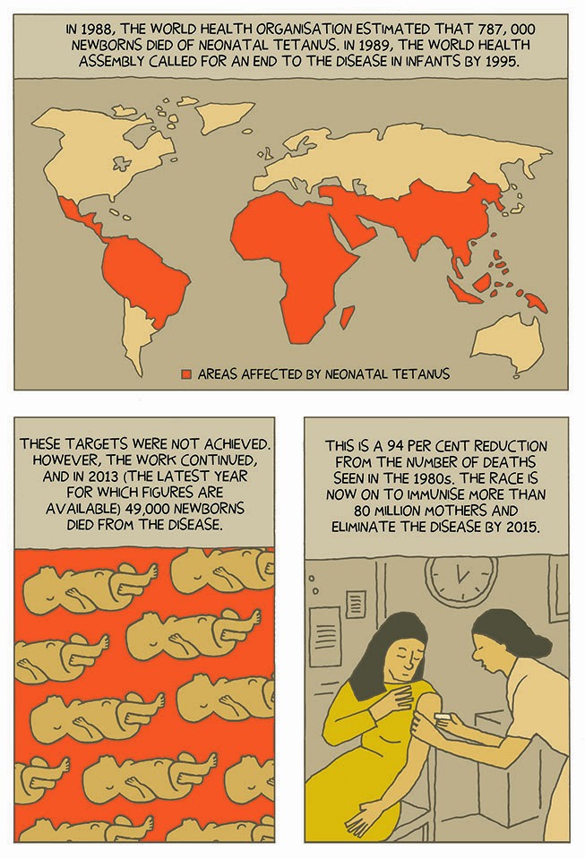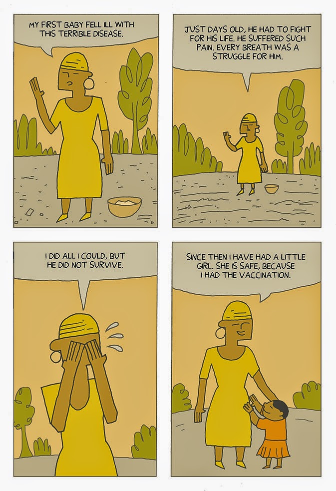 Last year I was invited to contribute to the Gate’s Foundation’s Art Of Saving A Life project along with more than 30 other artists.The theme was how vaccinations save lives. Here’s my ten page strip on the subject.