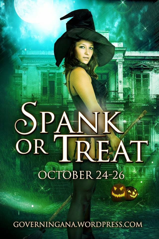 For more information, updates, and a list of participating authors, please visit Anastasia Vitsky’s blog.Like Spank or Treaton Facebook!Tweet #SpankOrTreat on Twitter!Join the exclusive chat with Spank or Treat authors! Message AnastasiaVitsky on Facebook or any of the authors to receive an invitationFor more spanking fun, visit Saturday Spankings for additional snippets. Find links to the rest of the Spank or Treat stories at Governing Ana! The more blogs you visit and comment, the more chance to win prizes!