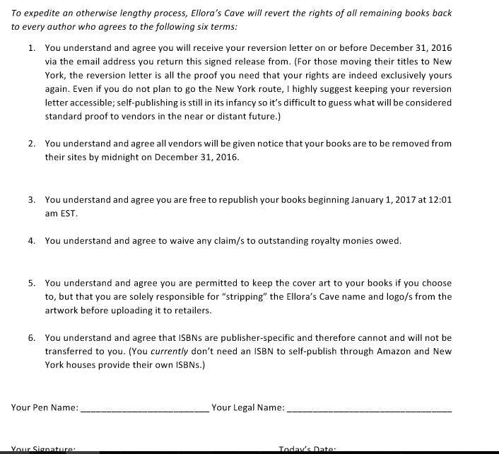No, this will not put me in a position to get my money back. Yes, this means those four stories of mine are likely getting dragged to bankruptcy court with the rest of the Ellora's Cave madness.