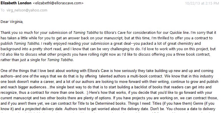 Ellora's Cave? My name is Virginia, and I hope that my name pops up on your desk as a reminder of what you did just as yours has continued to pop up on mine for so very long.