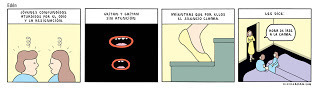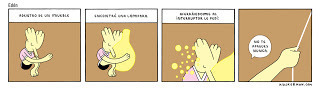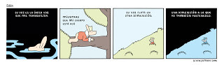 Martin Cendreda siempre fue uno de mis favoritos de las antologías comiqueriles Kramers Ergot y Mome. Lo sigo especialmente, aunque ha publicado poco. Me gusta su estilo directo, cartoony, limpio y, sobre todo, el ritmo de sus secuencias. Es un californiano que mantiene un bajo perfil y sigue haciendo mini comics en un momento en que casi todos se pasaron al libro o a la web. Este mini comic que leí hoy, de junio de 2010 y titulado Catch me if you can, pasó a mi lista de preferidos. Una historia muda sobre, creo yo, la cadena evolutiva y cómo nos relacionamos los seres humanos con el mundo y nuestro propio ego. Sencilla, clara, corta y conmovedora.