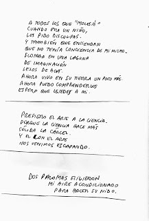 Una vez me encontré a mi mismo mintiendo. Y me me frené, y me reí, y me rasqué la nunca en señal de vergüenza.Y luego, con el mentón apoyado sobre la palma de mi mano,y la mirada al vacío,me pregunté cómo sería si pudiera hacer eso todo el tiempo.Evitar la mentira.Quiero todo, todo lo posible.Y entre ello,toda la verdad posible.